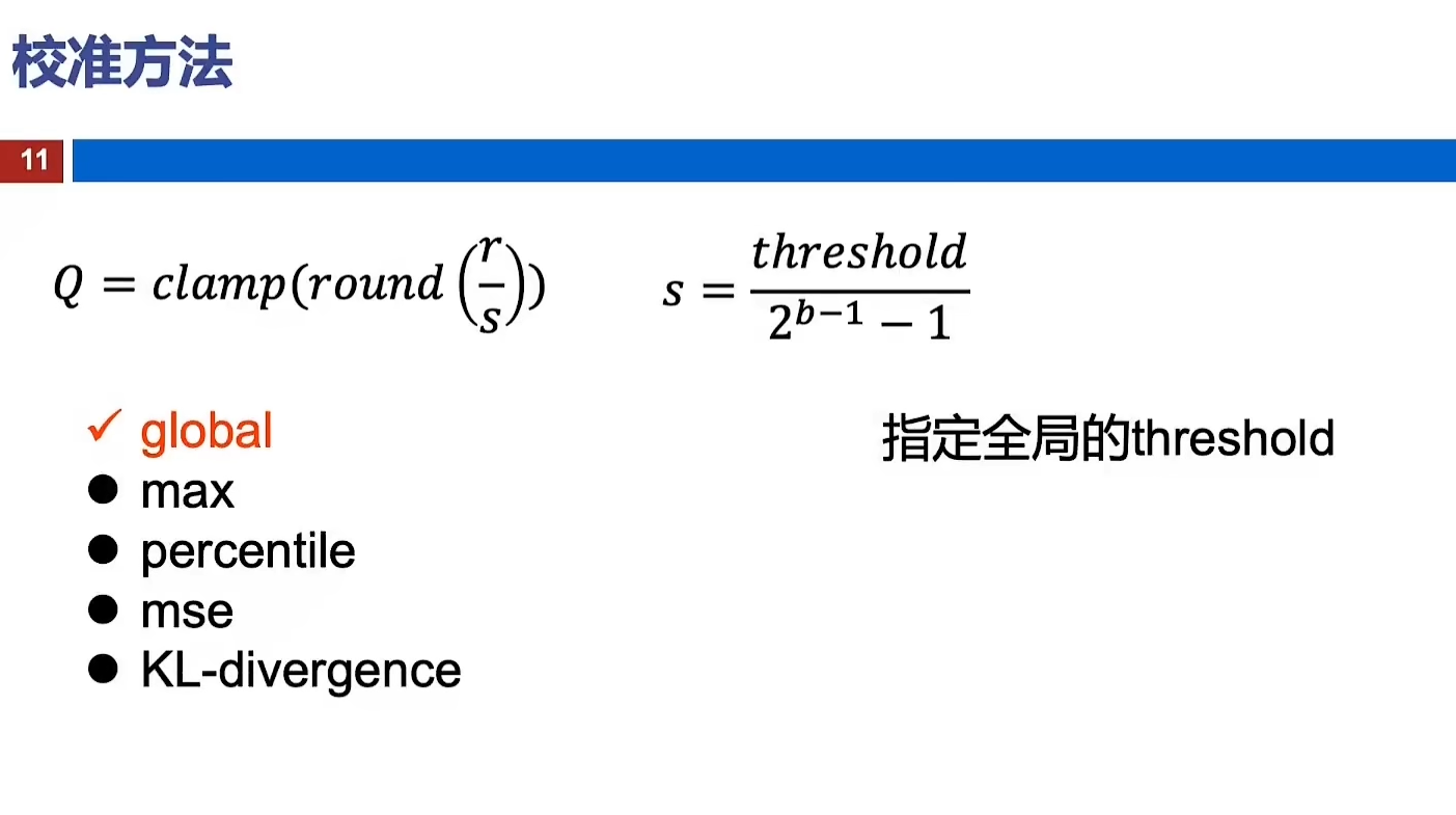 静态离线量化使用少量无标签校准数据,采用KL散度等方法计算量化比例因子。